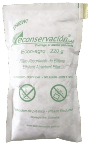 Sobres fabricados a base de papel certificado para contacto con productos alimentarios que contienen en su interior sustrato granulado absorbente de Etileno C2H4 y dióxido de carbono CO2
